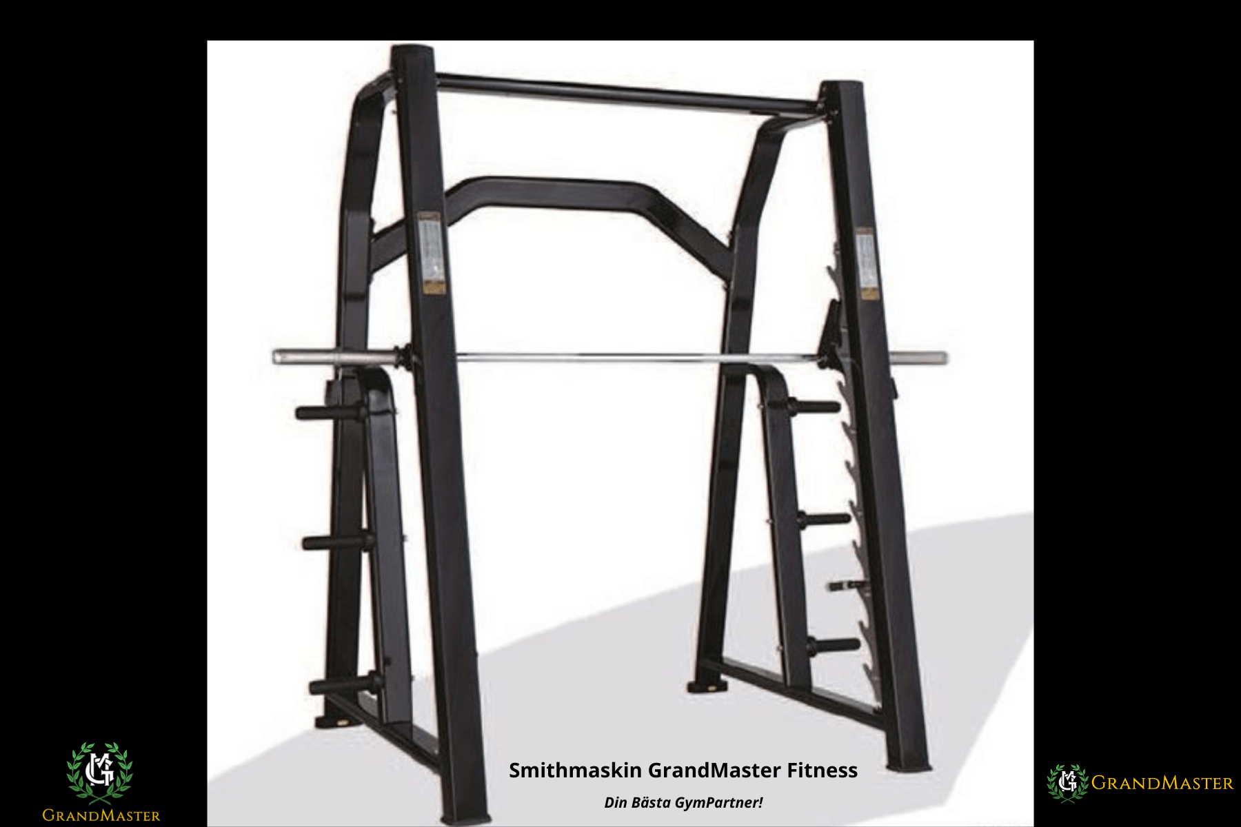 Smithmaskin demoex GrandMaster by GymPartner är en träningsmaskin där skivstången bara kan röra sig upp och ner i en vertikal bana.