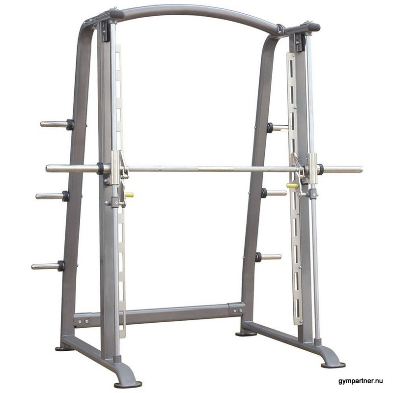Detta är en mycket stabil ställning på hela 178 kg. Den står stadigt på marken även utan att bultas fast. Fördelen med en smithställning är att utövaren kan känna sig mer säker i sin rörelse då stången går i ett förutbestämt läge och du när som helst kan "låsa av" maskinen genom den smidiga låsanordningen på stången vilket är till stor hjälp om du råkar lasta på för tunga vikter eller är på din sista repetition och inte orkar trycka upp vikterna.