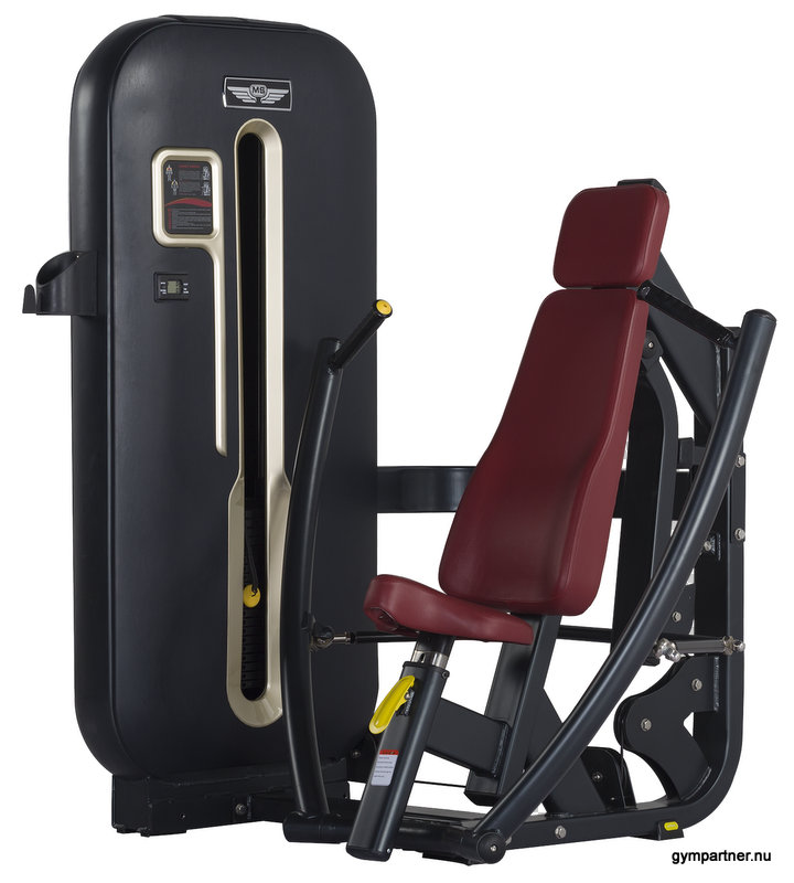 Denna kallas även vertikal bröstpress då övningen utförs med överkroppen i upprätt position. Chestpress plateload GrandMaster tränar framförallt bröst men aktiverar även triceps.