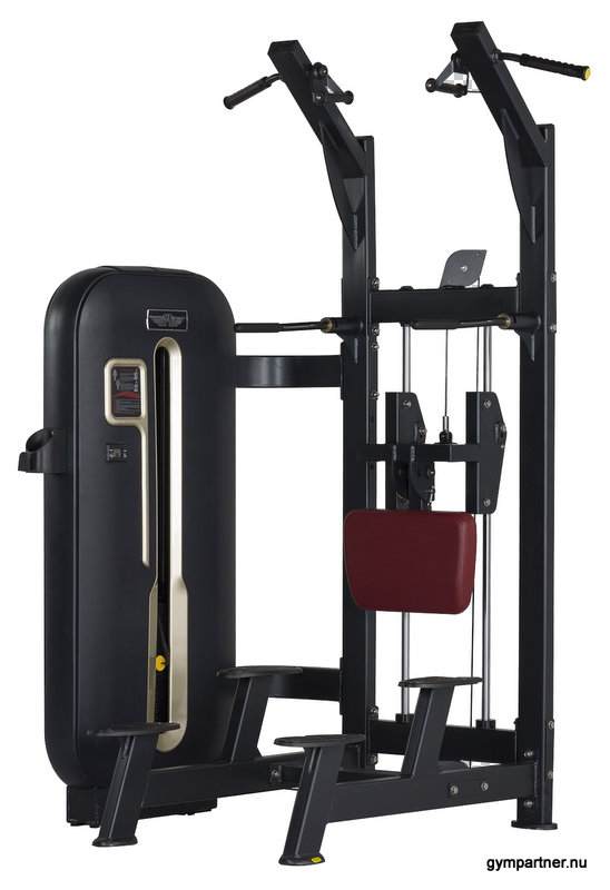 Chins-Dips-station GrandMaster PRO är en oerhört smidig och lätthanterad Chins/dips-maskin med viktmagasin för justering av motvikt.