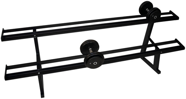 Praktiskt och robust hantelställ i 2 våningar (2,20m) med plats för 20 skivhantlar eller Hexhantlar.