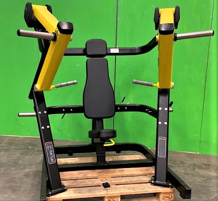 Denna kallas även vertikal bröstpress då övningen utförs med överkroppen i upprätt position. Chestpress plateload GrandMaster tränar framförallt bröst men aktiverar även triceps.