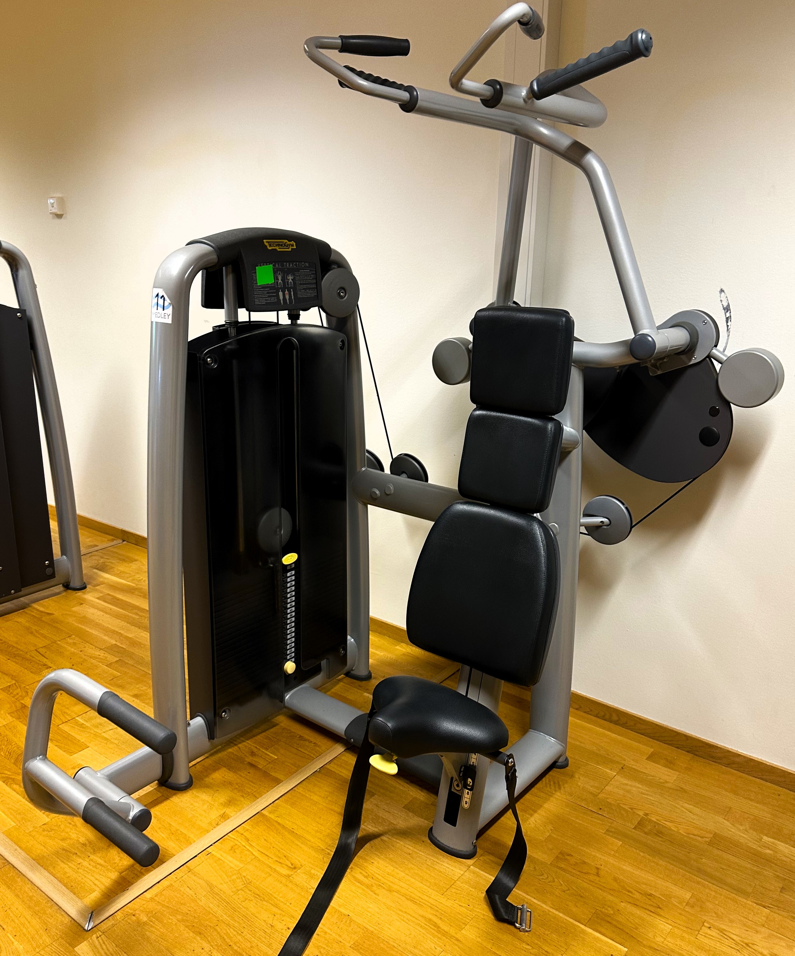 Latpulldown Selectionline Technogym med denna maskin tränar du framförallt Latissimus Dorsi, en av kroppens största muskler som sitter sidleds över ryggen och fäster i mitten av ryggraden.