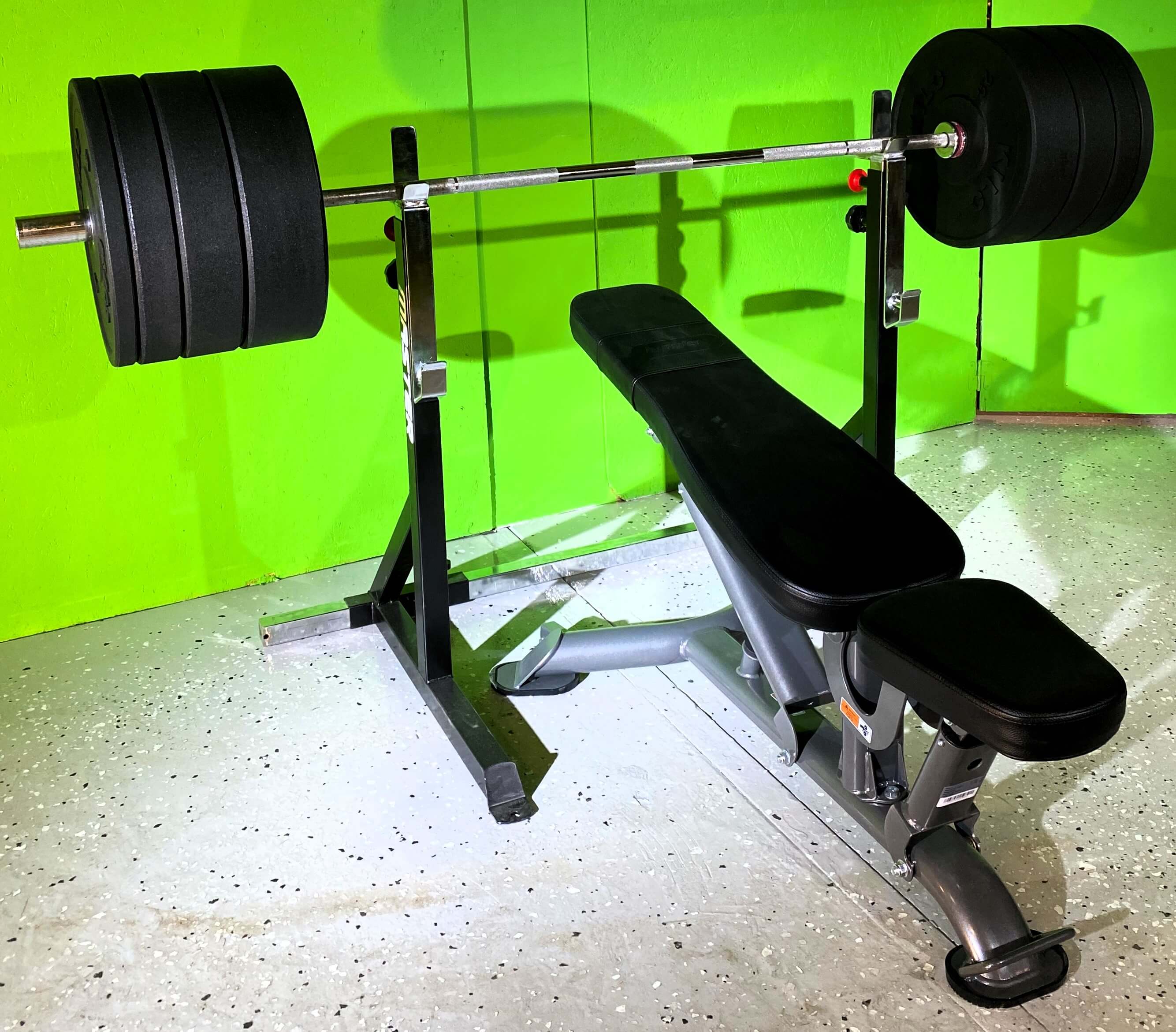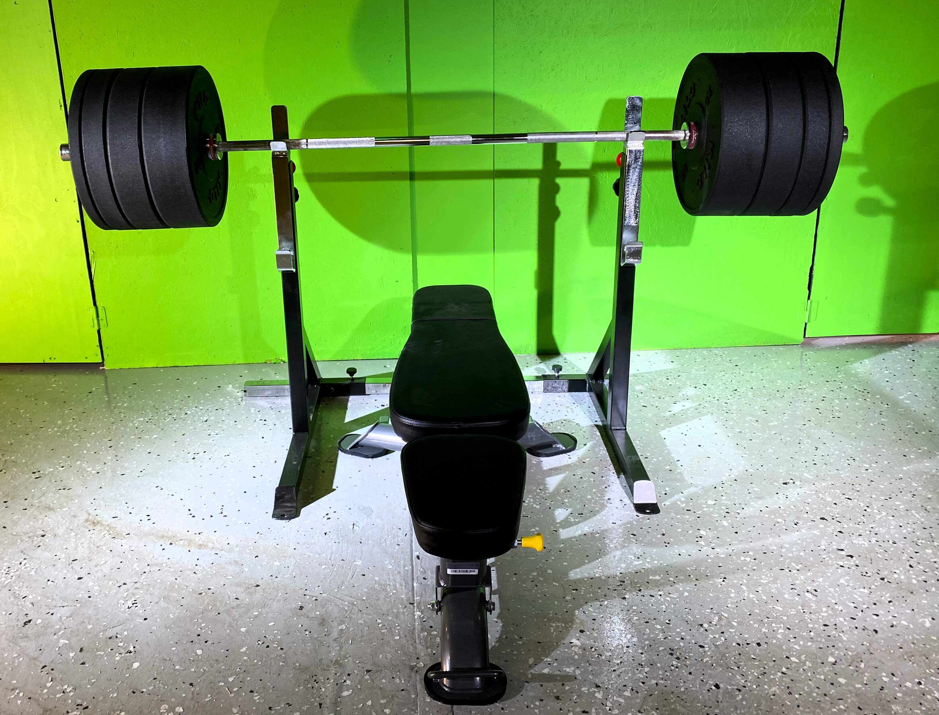 Gedigen skivstångsställning för tung träning