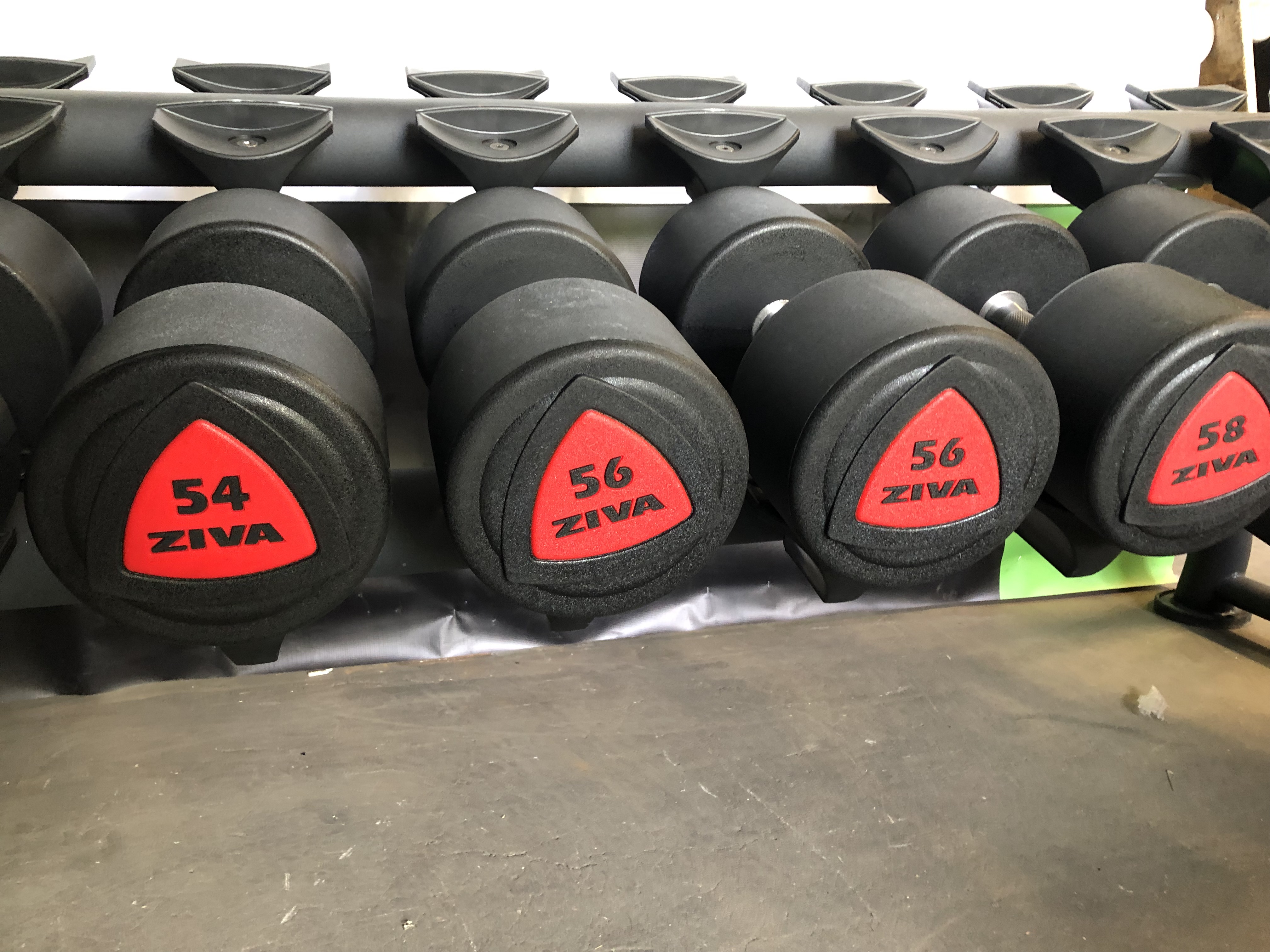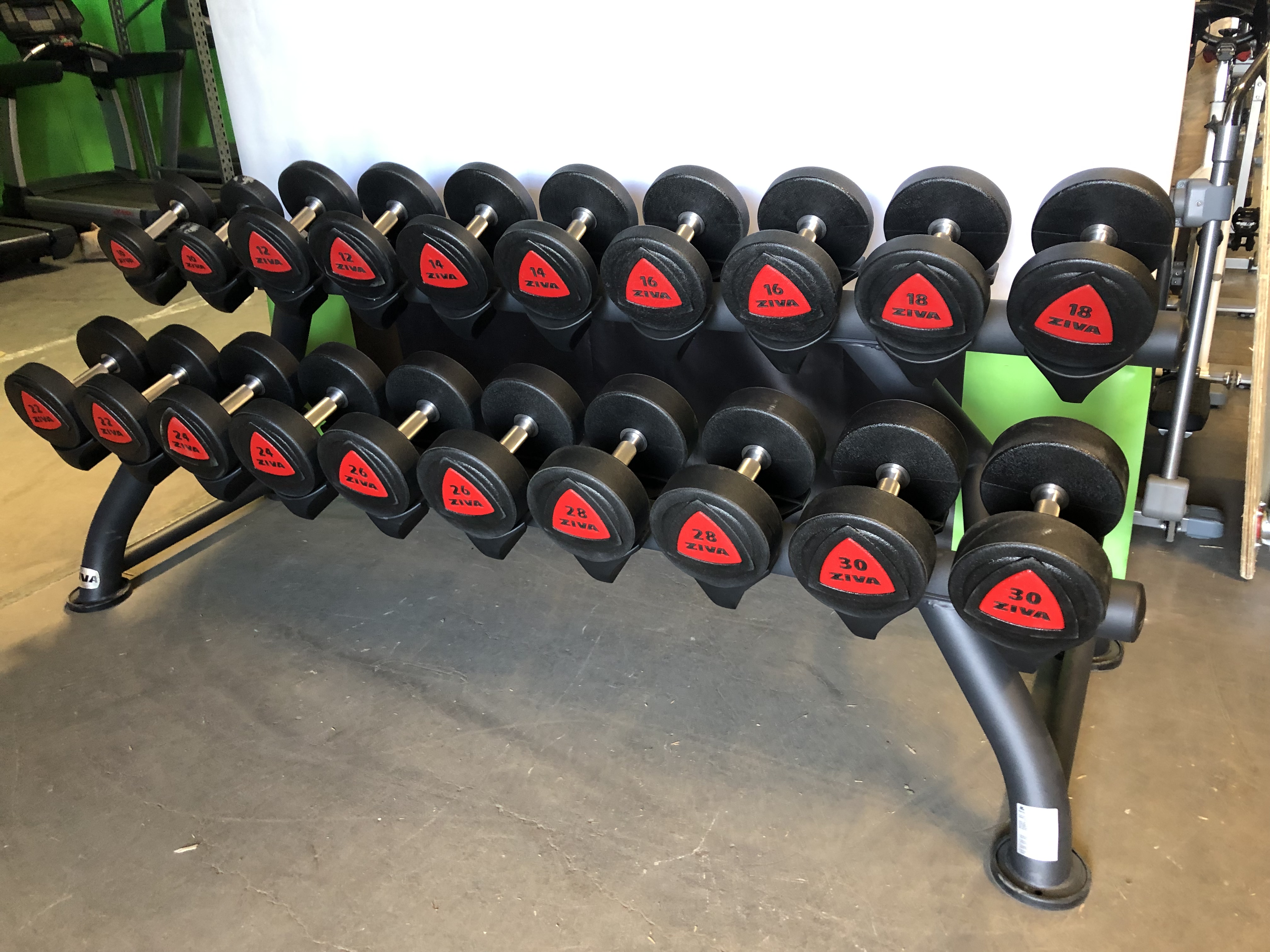 - ZIVA-hantlar i 10 par med endast två kilos steg.