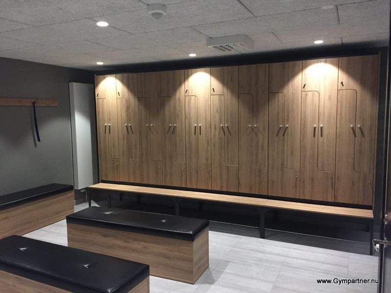 Laminerade träluckor ingår i GymPartner Sweden’s avdelning för förvaringsskåp och bänkar.