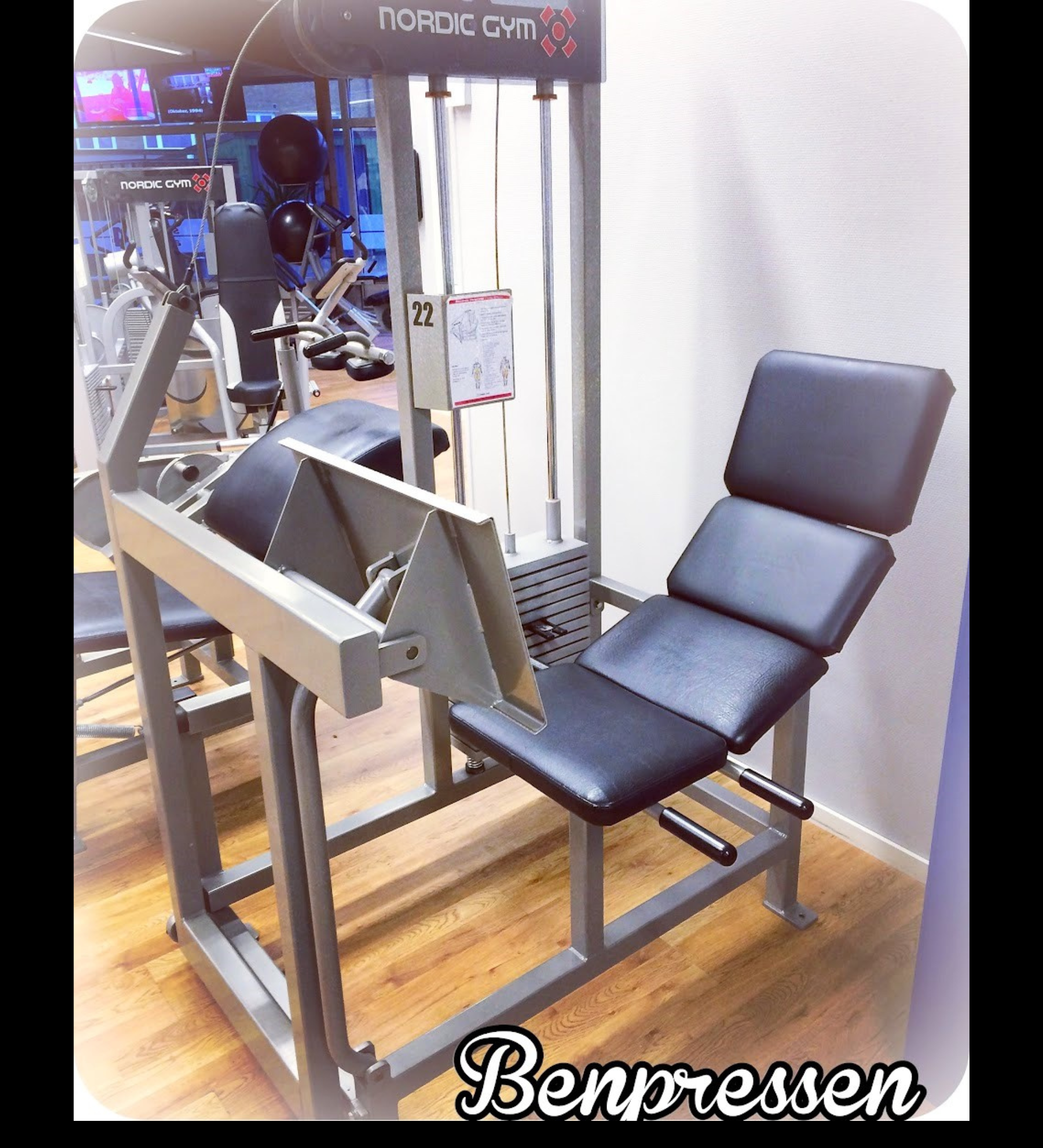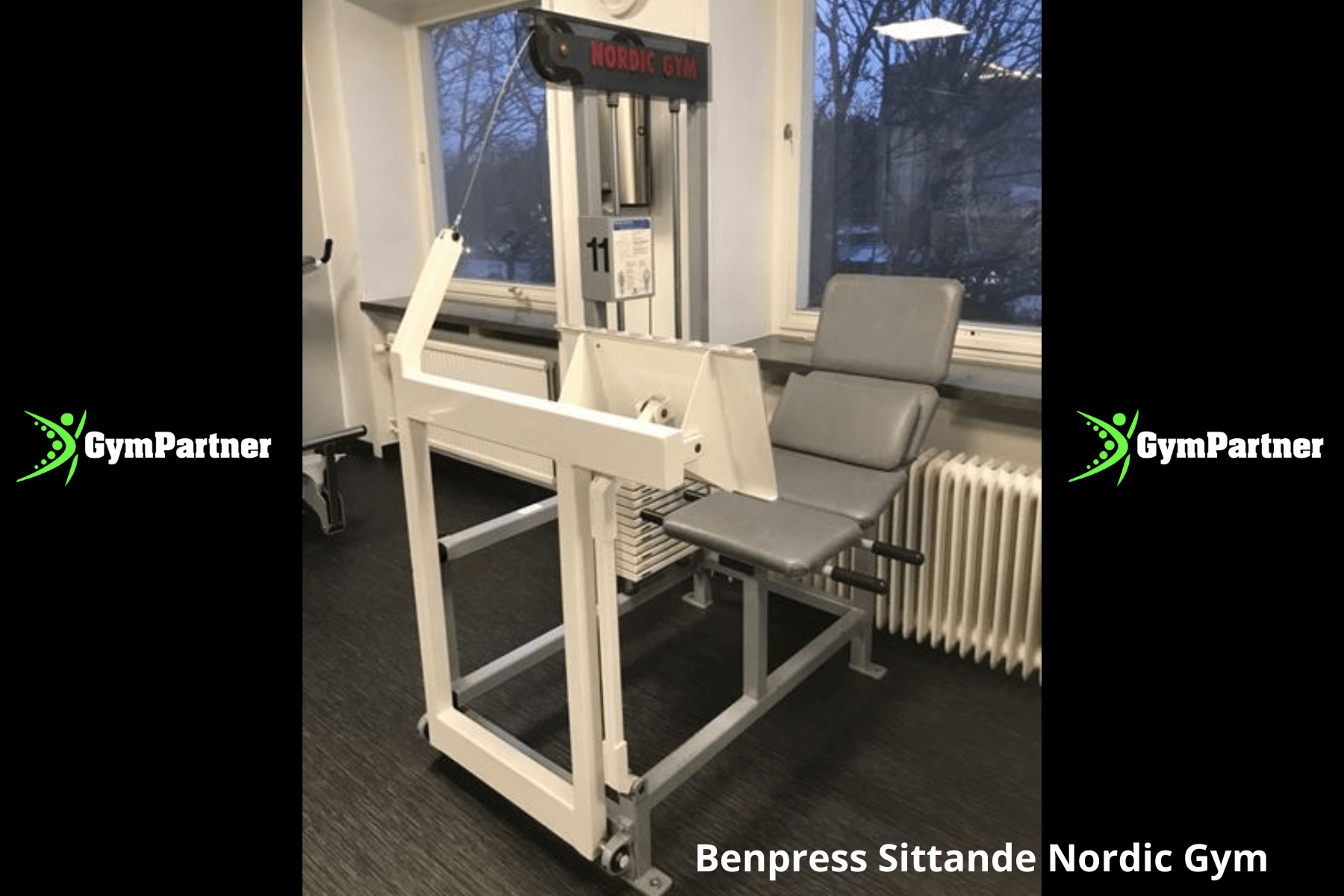 Sittande benpress Nordic Gym by GymPartner denna gym-maskin används genom att utövaren med hjälp av benen trycker en vikt eller någon slags motstånd ifrån sig.