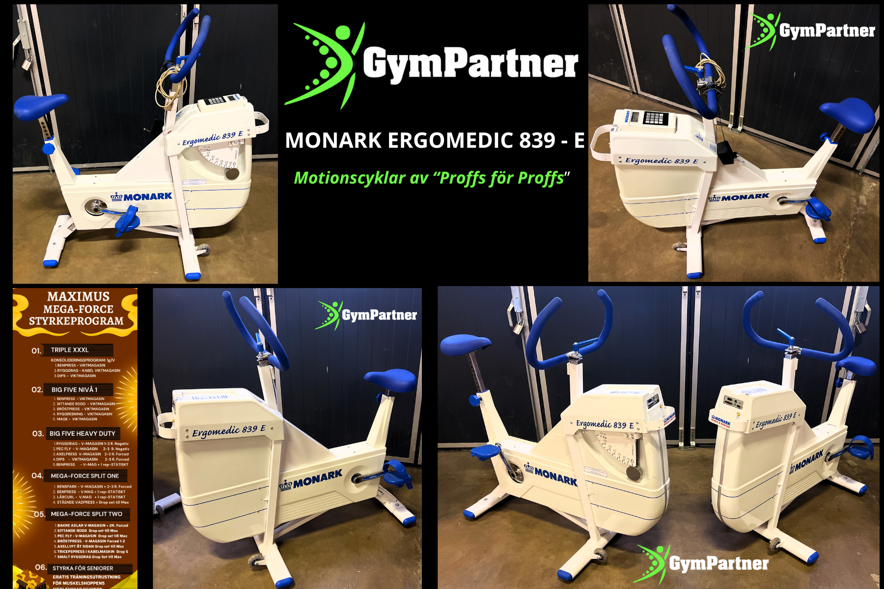 Nya Motionscyklar och redskap från GrandMaster Fitness finns alltid i både lagret och i vår nya utställning.