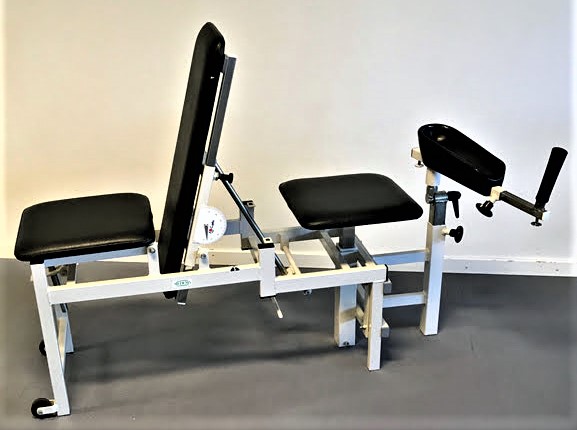 - Bänken har vinkelmätare och hjul för enklare förflyttning.