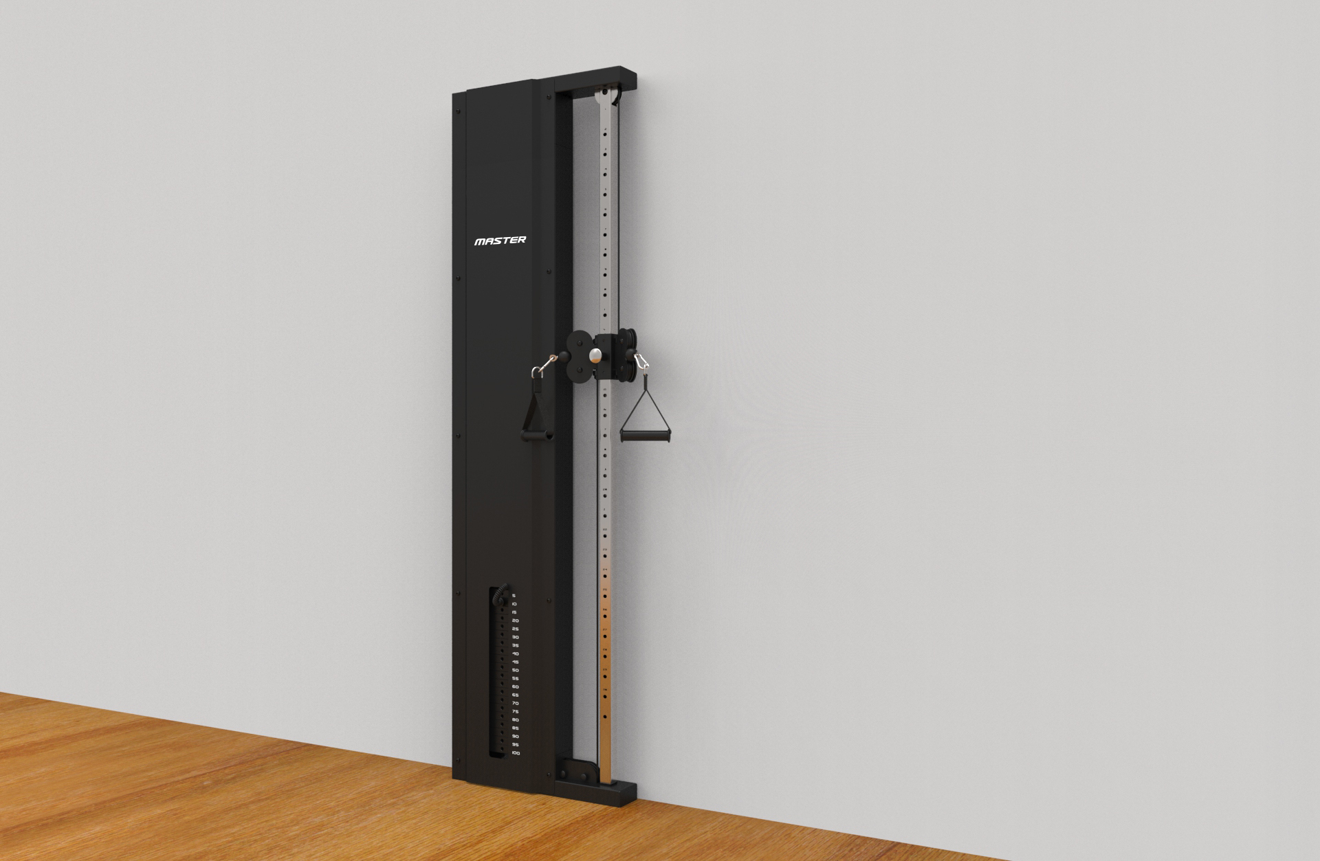 Denna kabelmaskin har ett viktmagasin på hela 100 Kg och fästes på fyra punkter mot väggen. GrandMaster fitness presenterar stolt en av de mest prisvärda och kompakta kabelmaskinerna på marknaden.