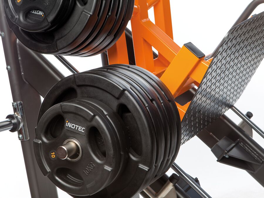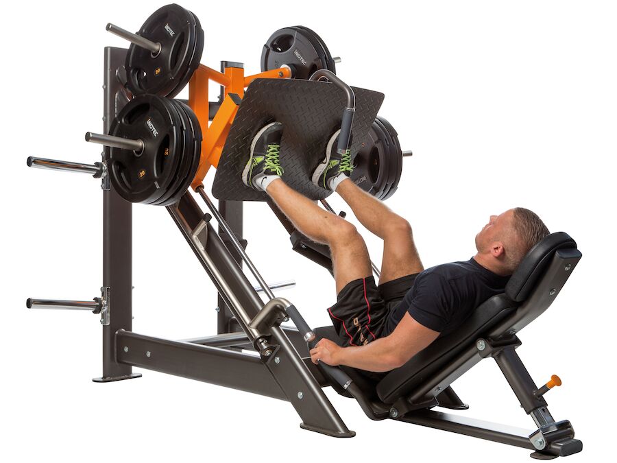 Benpress 45 grader Inotec är en övning fokuserar i första hand på quadriceps, musklerna på lårets framsida, samt lite längre ner aktiveras även gluteus maximus ( Stora sätesmuskeln).