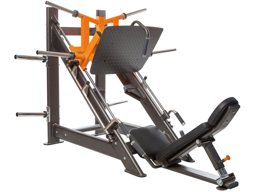 Benpress i 45 graders vinkel är en friviktsmaskin, vilket innebär att du hänger på viktskivorna på vikthållarna.
