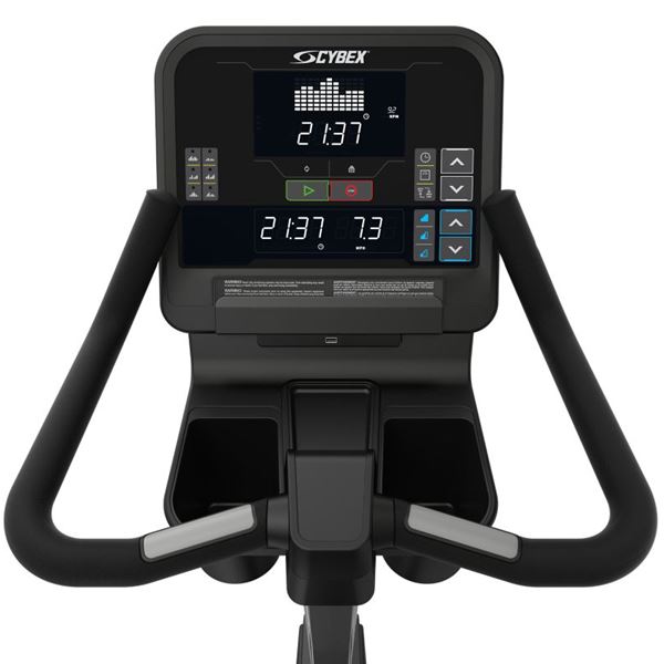 - Displayen på Träningscykel Cybex Upright Bike 50L är en ljusstark LED-skärm med knappar som är lätt att navigera och kräver ingen elanslutning.