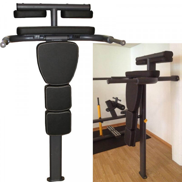 Det sitter också diphandtag på bänken för effektiv armträning.Lev. komplett, fästes i golv och vägg.