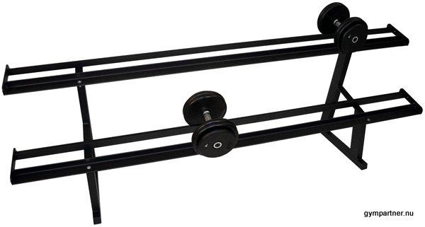 - Produktspecifikation Stabilt och enkelt GYMLECO hantelställ med dubbla hyllor (2,2 m) med plats för 10 hantelpar. Finns även med enkelt hyllplan med plats för 5 par hantlar. Kan även levereras i annan längd enligt önskemål.
