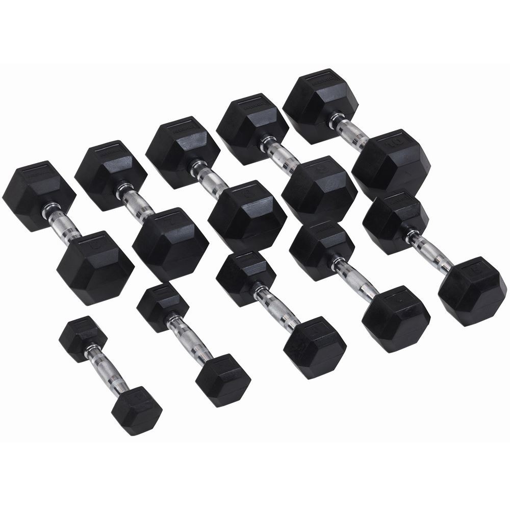 - Majoriteten av övningar med hantel kräver att man har två stycken och i ett set får man flera par med olika vikter.
