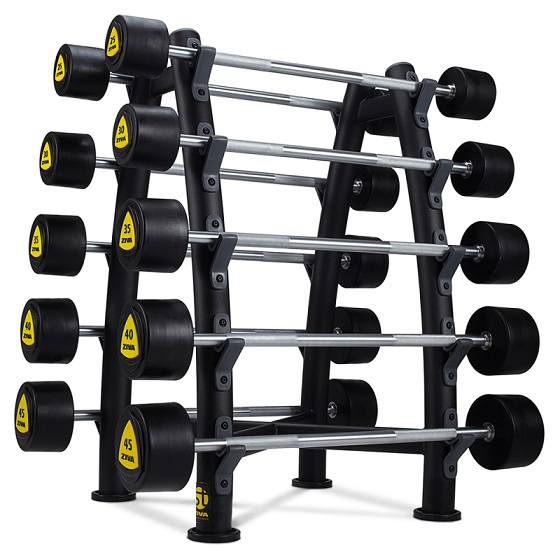 Ziva PRO Skivstångsställning med 10 platser för fasta skivstänger. Ziva är stora på frivikts- och funktionell träning samt gymtillbehör.