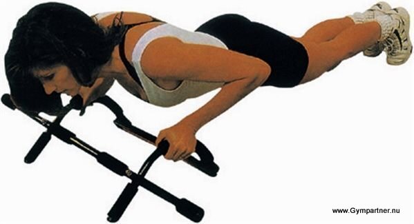 Chinsräcket i dörrposten är ett klassiskt redskap och återfinns hemma hos ett mycket stort antal personer i Sverige. En av nackdelarna med de klassiska chinsstängerna är dock att de endast skruvas ut mot dörrkarmen vilket gör att de då och då ramlar ner. Detta chinsräcke har lite extra säkerhet genom en överliggare som läggs på dörrkarmen.