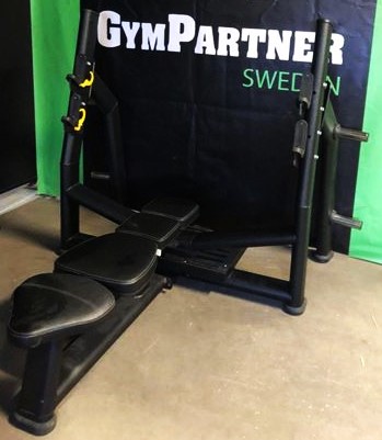- Plan bänkpress med dubbla viktställ och supportplatta