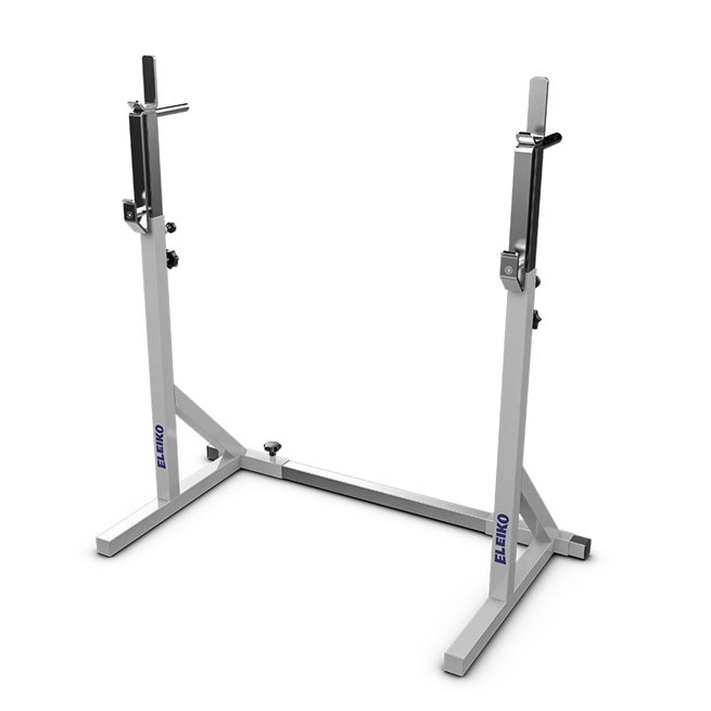 Skivstångsställningen är en av Eleikos allra mest sålda produkter och kan hittas i både kommersiella och hemmagym världen över. Denna justerbara skivstångsställning kan användas som bänkpresställning och knäböjställning då den har dubbla konsoler.