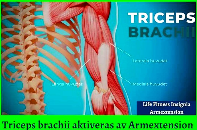 Triceps sitter på baksida av överarmen och har som uppgift att sträcka i armbågsleden. Triceps är en trehövdad muskel där ett av huvudena fäster ovanför axelleden. Vill vi därför sträcka ut triceps maximalt och arbeta med denna del så måste vi lyfta upp armen ovanför och bakom huvudet.