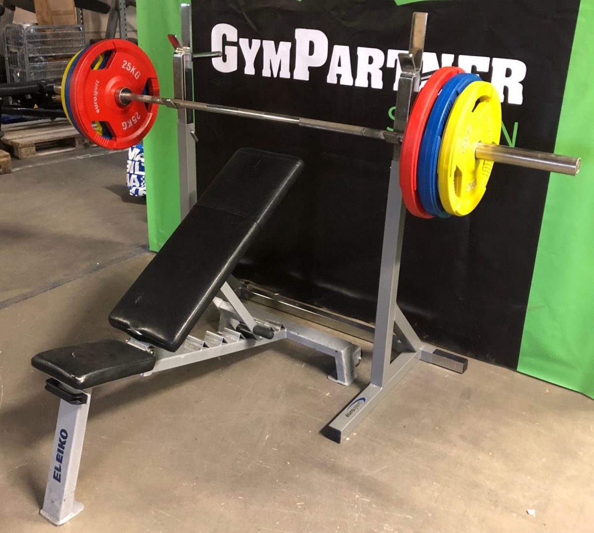 - Ställbar begagnad bänk Eleiko upp till 85 grader,hjul och fotstöd.