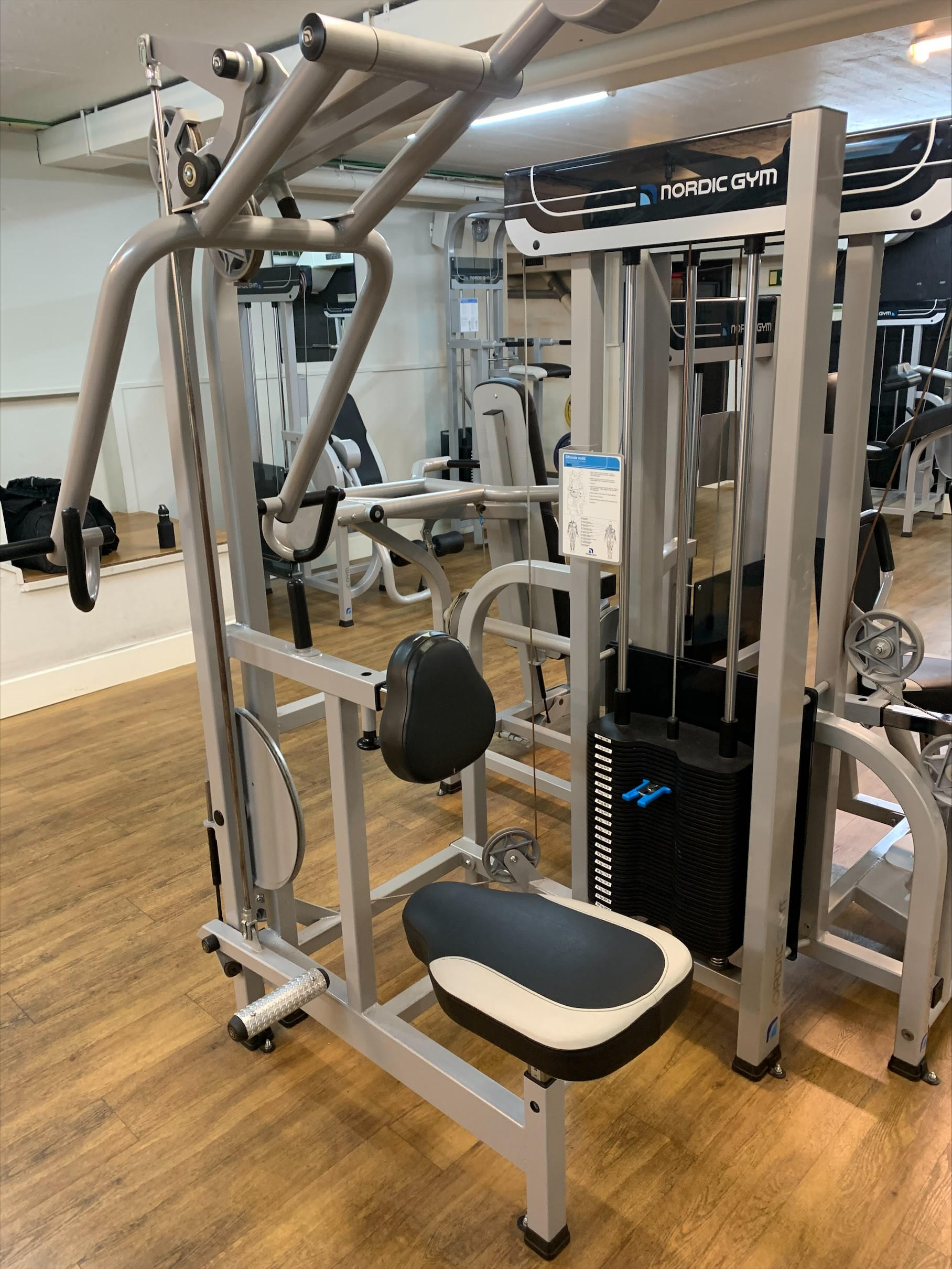 Sittande ryggdrag Nordic Gym by GymPartner är en övning som tränar främst övre rygg och biceps. I sitt utförande liknar den chins, men latsdrag utförs i en maskin.