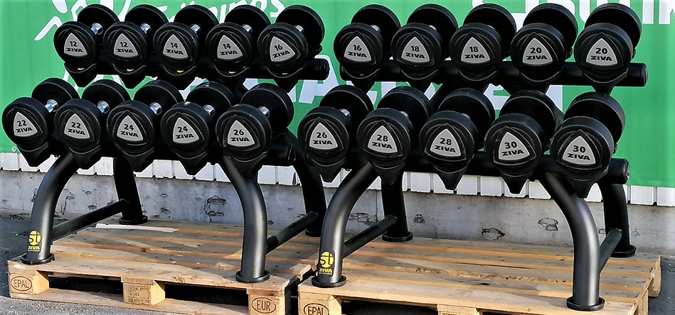 - Hantlar Urethane Ziva PRO-hantlar i 10 par med endast två kilos steg.