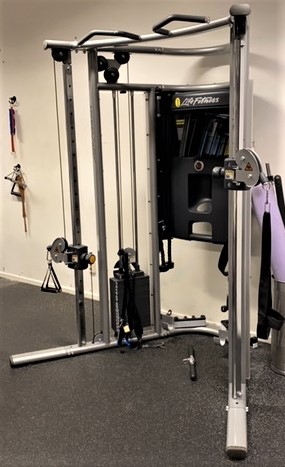 Företag-Föreningsgym i nyskick med omgående leverans. Maskinerna ser knappt använda ut och förmedlas från ett rehabgym. Spara mycket tid på att slippa att ta dig till och från gymmet eller träningshallen.