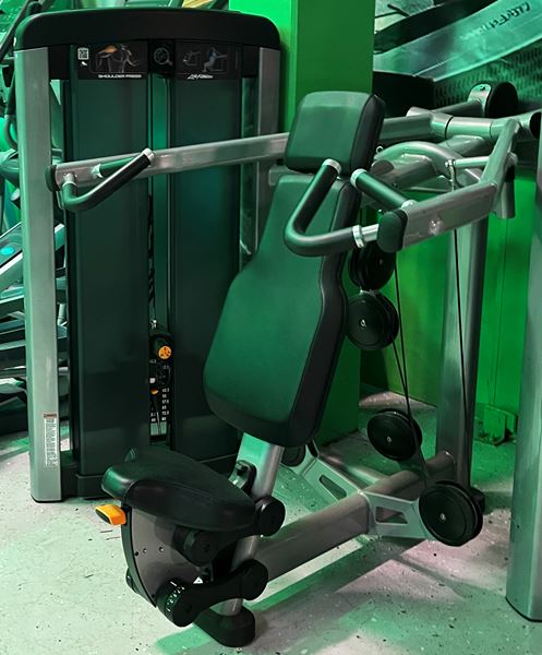Denna maskin LifeFitness Axelpress Insignia har Digital repetitionsräknare, Stort viktmagasins-skydd, Ergonomiska säten, Snabbjusterande säten, Instruktionstavla. Vi på GymPartner har valt ut dom bästa maskinerna som hjälper dig att komma i form snabbt och effektivt.