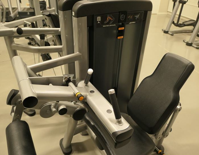 - Legcurl Sittande Insignia LifeFitness har en innovativ design med anatomiskt formad stödkudde som minimerar trycket på knäet och en pekare som säkerställer rätt vinkel på knäet.