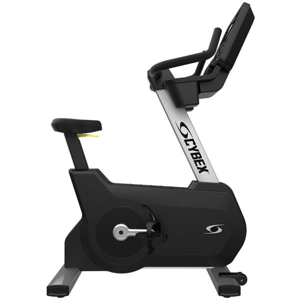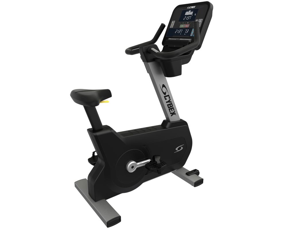 Träningscykel Cybex Upright Bike 50L. Denna träningscykel och den industriella designen ger den upprätta träningscykeln samma estetiska egenskaper som den övriga av Cybex R Series-konditionsutrustning.